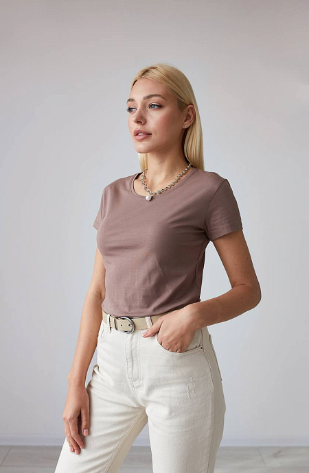 Базовая футболка в цвете молочный шоколад
