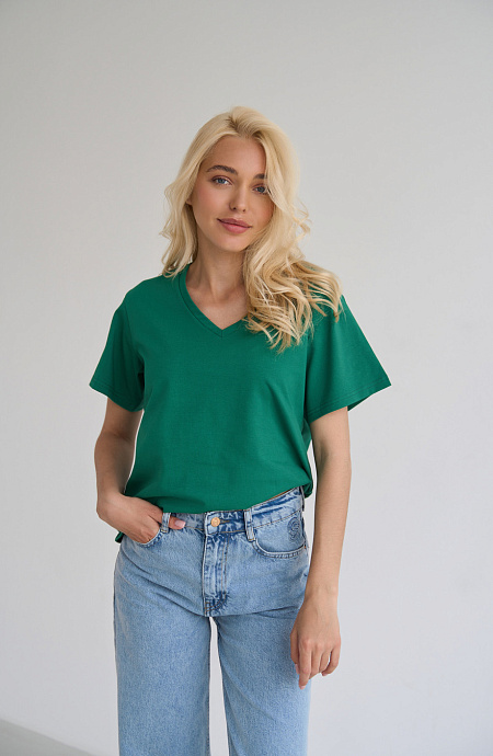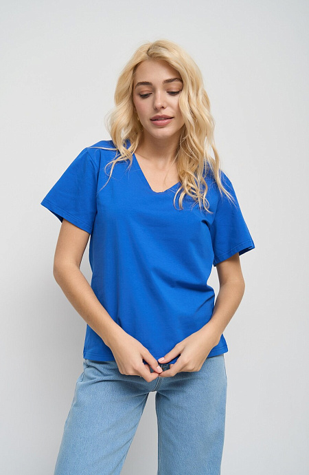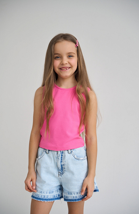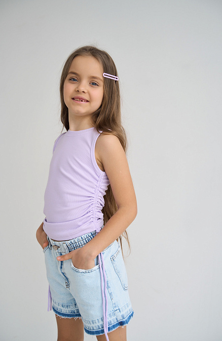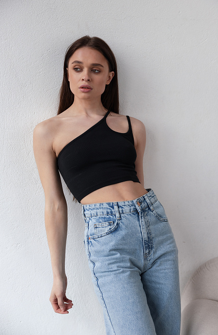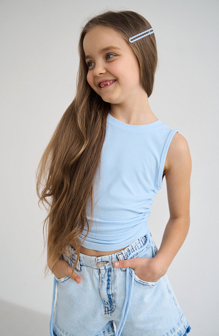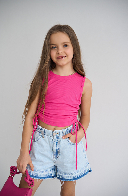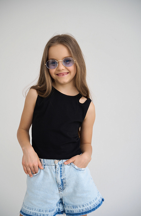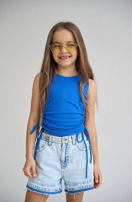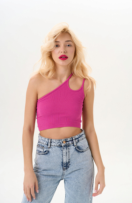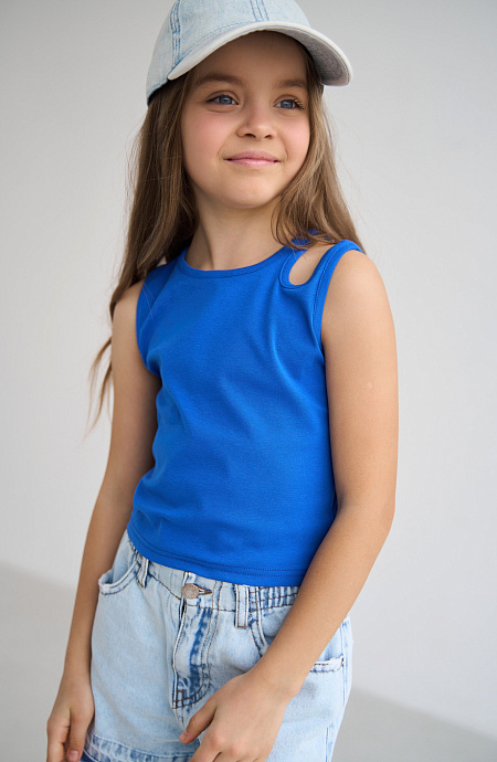 Детский топ с фигурным вырезом на плече в цвете электрик