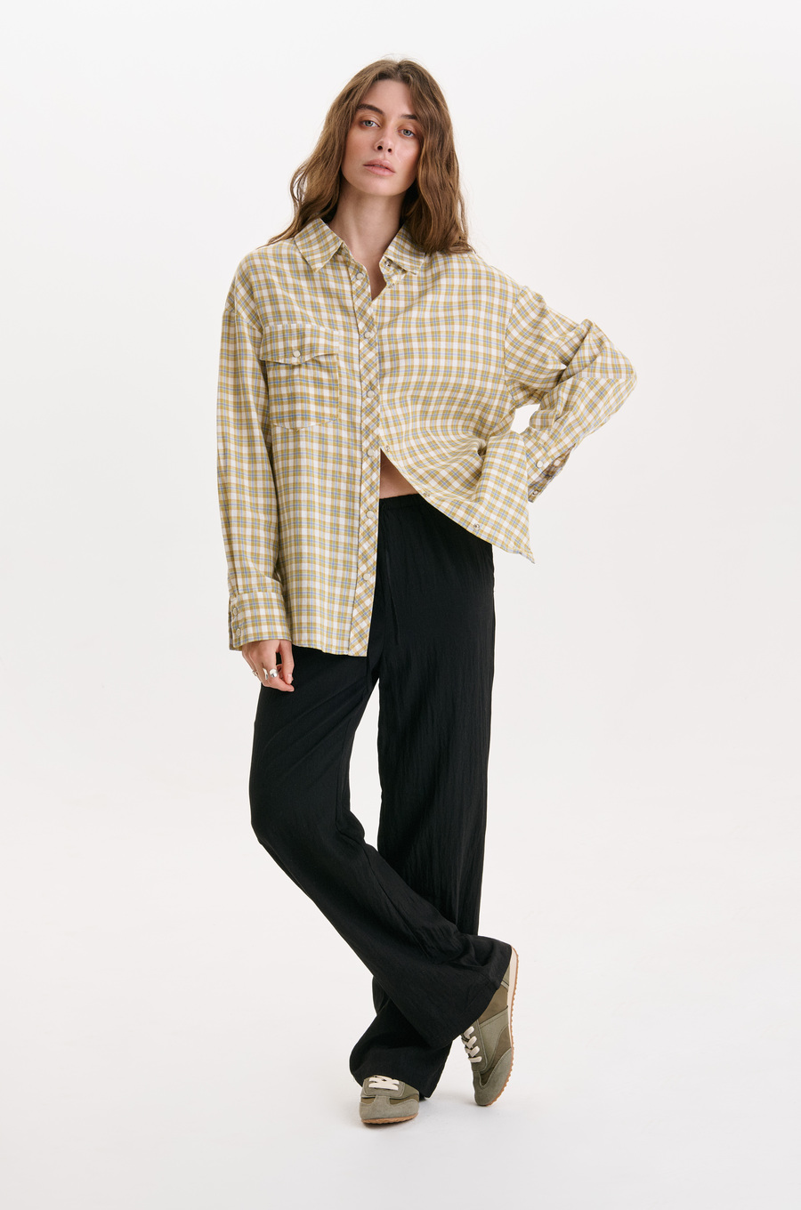 Брюки из вискозы в черном цвете – это легкость и комфорт в каждом шаге. Свободный крой дарит свободу движений, а эластичный пояс с завязкой лишает лишнего давления и удобно адаптируется к фигуре. Брюки идеально подойдут для луков в стиле сафари: просто добавь белую или бежевую рубашку из натуральной ткани, сандалии на плоской подошве с ремешками, шляпу или панаму и солнцезащитные очки. Если хочешь создать более элегантный и благородный образ, сочетай их с верхом в глубоких оттенках: изумрудно-зеленом, темно-синем или бордо.