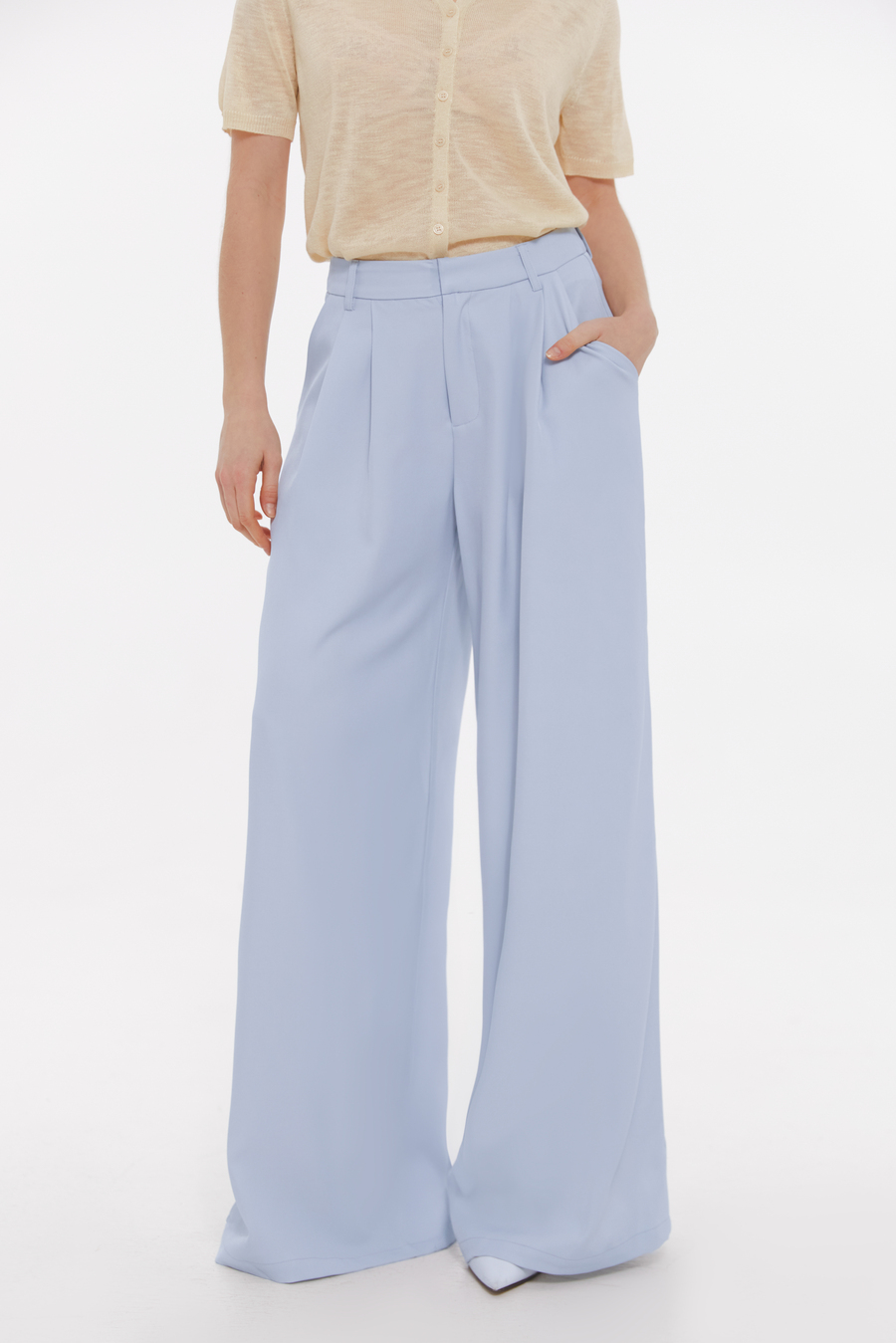 Легкие широкие брюки классического кроя создают изящный силуэт и придают образу чувство пространства и движения. Аккуратная посадка на талии подчеркивает фигуру и делает модель подходящей как для офисных, так и для более расслабленных образов. Легко сочетаются с боди (арт. 3117), лонгсливами (арт. 3033), трикотажными джемперами, рубашками или жакетами – в зависимости от настроения дня. Классические женские брюки пастельных оттенков будут идеально подходить к весенне-летним образам.