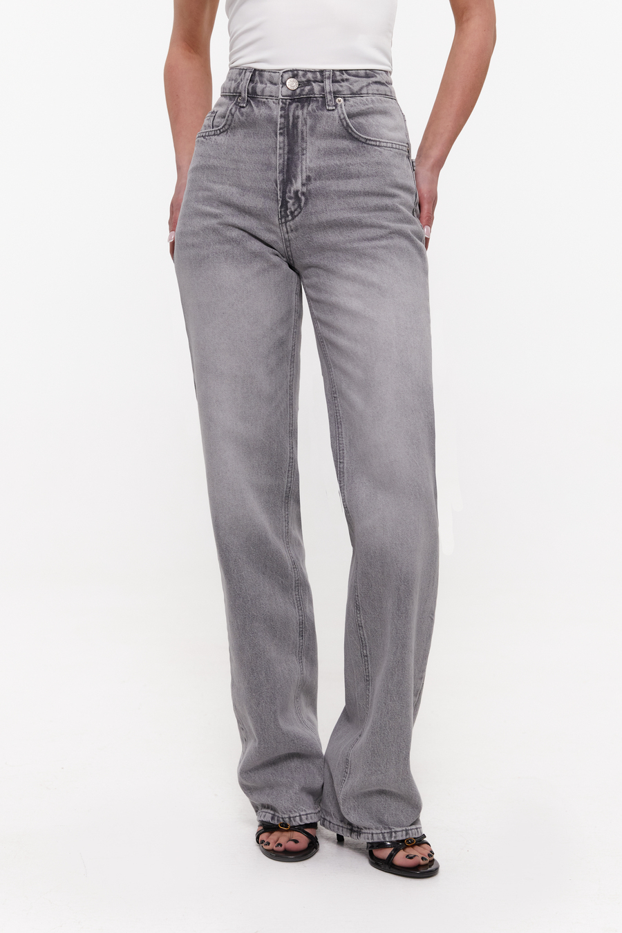 Женские прямые джинсы с высокой посадкой в холодном сером оттенке формируют современный сдержанный силуэт. 100% хлопковый деним хорошо держит форму и обеспечивает комфорт в повседневной носке. Лаконичный дизайн делает модель универсальной базой для разных стилизаций – от минималистичных до более собранных. Серые прямые джинсы лучше сочетаются с черными, графитовыми, шоколадными или белыми лонгами (арт. 3035) или боди, а также с топами пастельных оттенков для более мягкого контраста. Идеальный выбор для городских прогулок, smart casual или street style образов.