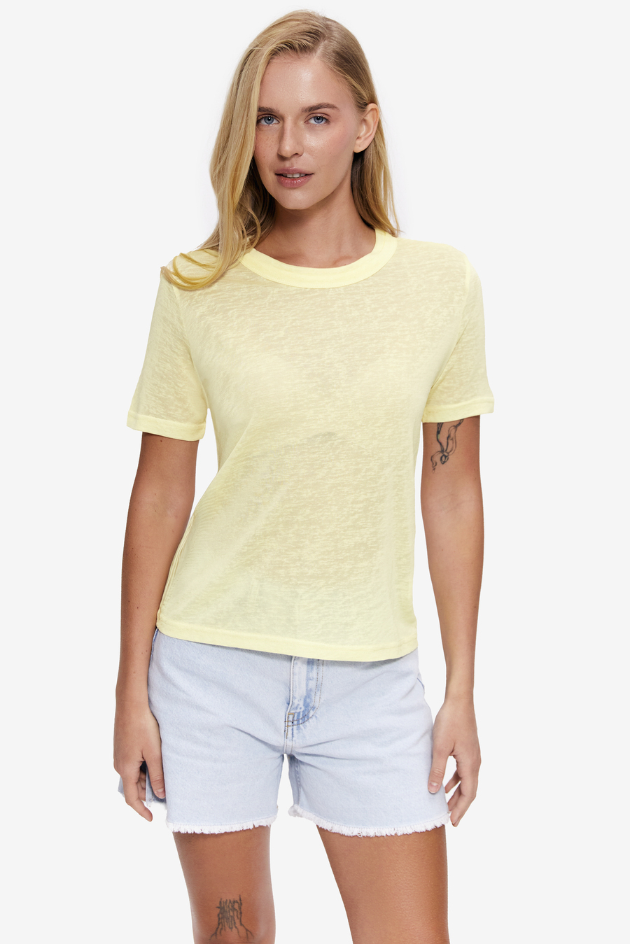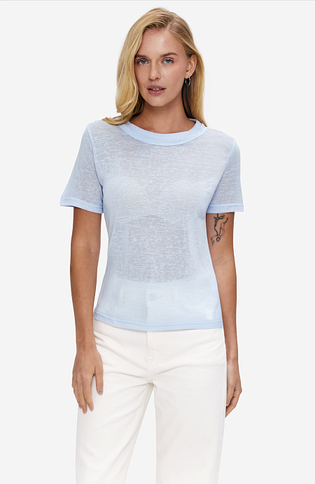 Базовая футболка из мягкой ткани с легкой полупрозрачностью приятно ощущается на теле и хорошо пропускает воздух. Материал обладает деликатной гладкостью и красиво ложится по фигуре, создавая чистоплотный силуэт, а фактура "березка" придает образу естественности. Ее легко сочетать с джинсами, сатиновыми брюками (арт. 6117), юбками или костюмными комплектами. Базовая женская футболка подойдет для работы, путешествий, прогулок по городу и дням, когда хочется выглядеть стильно без труда.