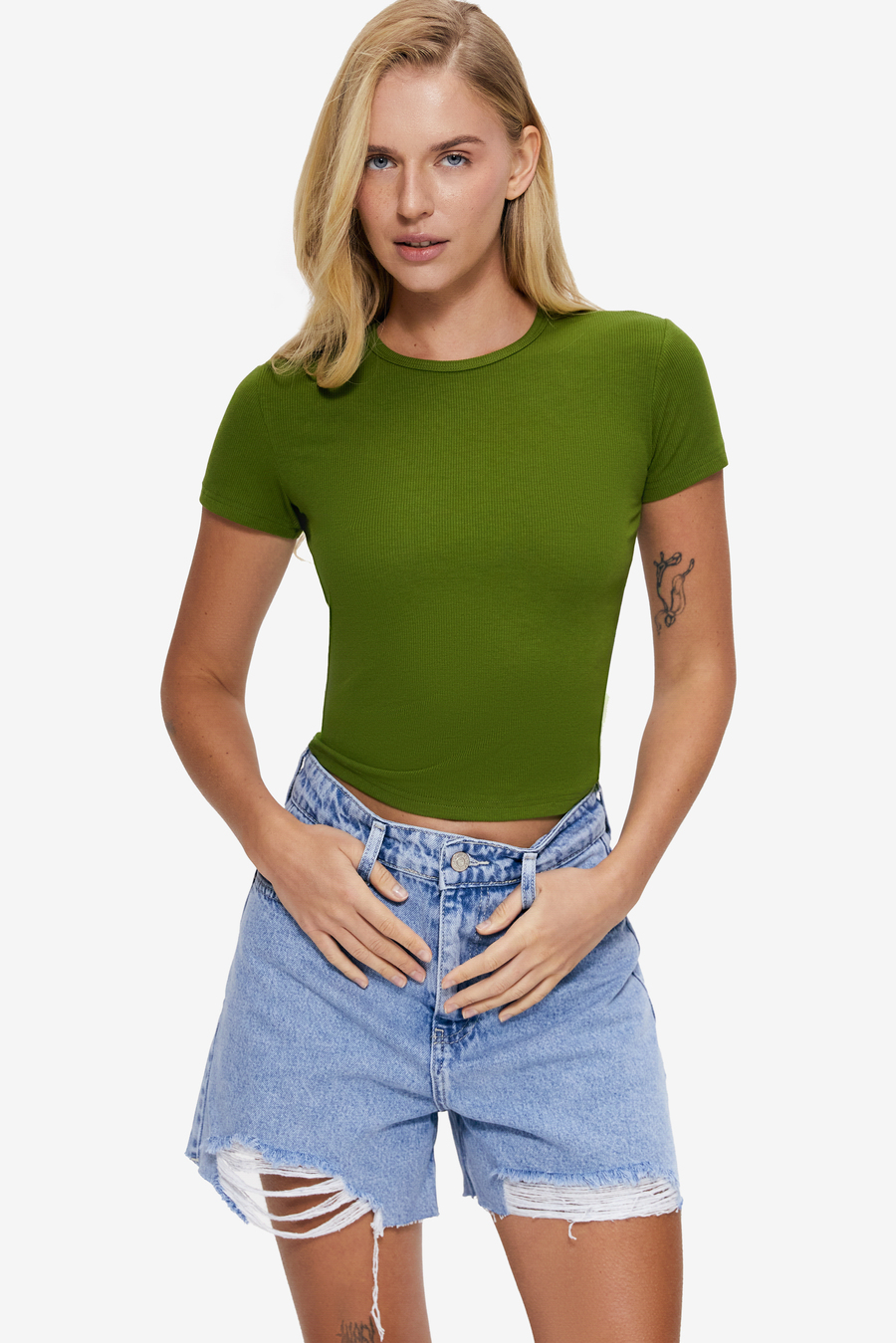 Укороченная футболка в рубчик – базовая вещь на каждый день, выглядящая лаконично и современно. Короткий крой красиво подчеркивает талию и придает образу легкости, а эластичная фактурная ткань мягко прилегает к телу и дарит комфорт в течение всего дня. Модель подойдет для активного городского ритма, путешествий или непринужденных выходных. Стилизуй джинсы с высокой посадкой, юбками, шортами или добавь жакет для более собранного настроения. Это именно незаменимая футболка в базовом женском гардеробе, которая незаметно становится любимой.