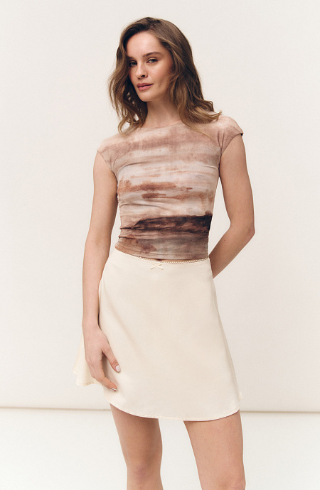 Базовая однотонная футболка бежевого цвета – является классикой базового гардероба, с ней любой наряд выглядит нежно, лаконично и уместно. Футболка изготовлена из трикотажа, который хорошо выглядит на любой женской фигуре, дарит ощущения легкости и свободы.