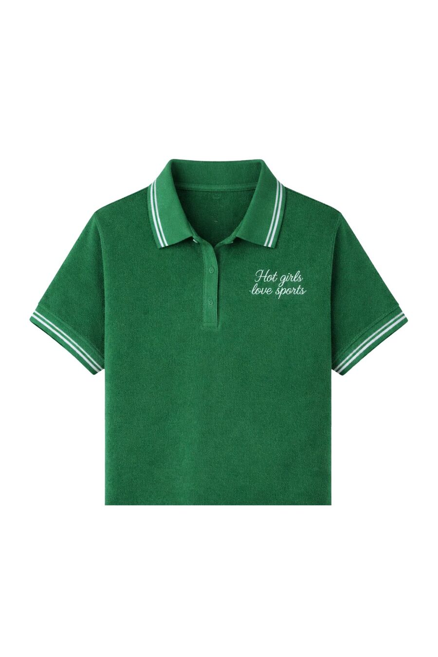 Футболка-поло из ткани терри в стиле tenniscore — про лёгкую спортивную эстетику и безупречный комфорт. Мягкая фактурная ткань терри на хлопковой основе обеспечивает отличную воздухопроницаемость и гигроскопичность, поэтому подойдёт как для тренировок, так и для активных прогулок. Эту модель можно приобрести в комплекте с шортами (арт. 2908) для стильного образа в эстетике athleisure. Воротник-поло и лаконичный крой позволяют сочетать её и с классическими вещами, создавая интересный контраст. Женская футболка терри с надписью "Hot girls love sports" — идеальный выбор для casual-образов со спортивным настроением.