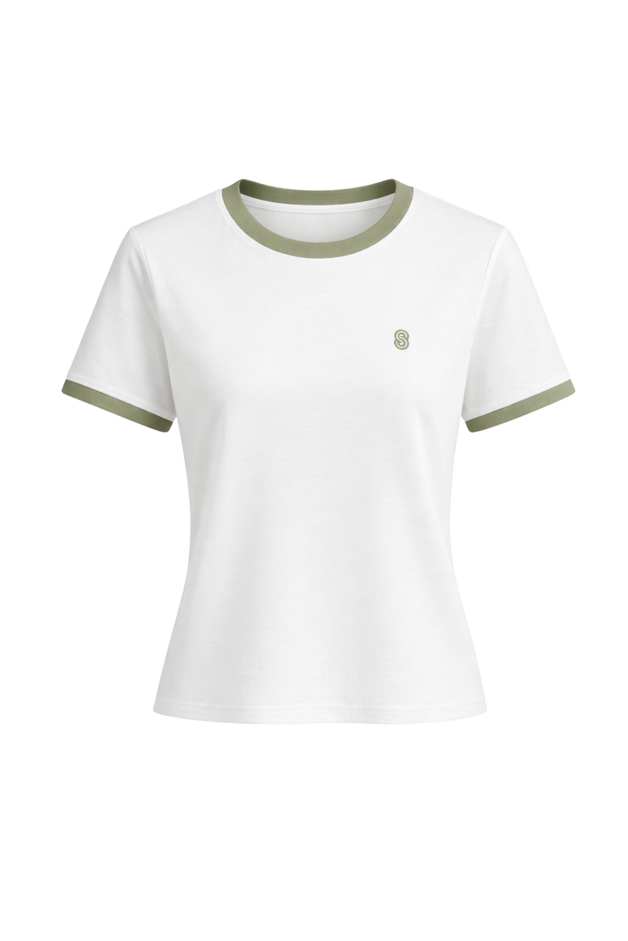 Футболка с контрастной окантовкой и лаконичным лого придает образу графичности и спортивной эстетики. Мягкая хлопковая основа обеспечивает комфорт и легкость в носке, сохраняя форму в течение дня. Соединяй ее с базовыми джинсами или штанами для городского стиля, или с шортами – для более расслабленного вида. Кеды, лоферы или минималистичные сандалии удачно дополнят образ в зависимости от настроения. Футболка подойдет для активного отдыха, путешествий и комфортных повседневных лугов.