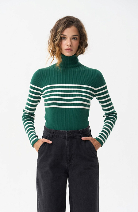 Свитер с высокой горловиной изготовлен из гладкого и плотного трикотажа, который отлично согревает и дарит приятные тактильные ощущения. Оцените другие его преимущества, кликнув на кнопку «Купить».