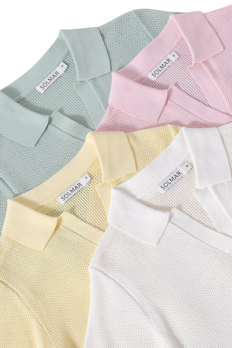 Базовая футболка с оригинальной плетеной фактурой и воротничком поло. Сделана из мягкого, но износостойкого материала на основе хлопка, хорошо тянется и не стесняет движений. Манжету можно подогнуть, поэтому футболка подойдет и к вещам с высокой посадкой. Будет выглядеть прекрасно и в сочетании с жакетами, и как отдельный элемент в теплую погоду, поэтому гармонично дополнит твои образы и весной, и летом.