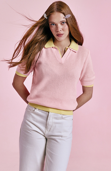 Эта трикотажная футболка выглядит очень нежно и дарит комфортные ощущения благодаря приятной фактуре. Деликатные полоски прекрасно освежают, при этом не перегружая образ. Сочетай ее со светлыми джинсами для классического casual-лука или стилизуй с шортами и белоснежными кедами для легкого летнего вида. Можно также комбинировать со светлой плиссированной юбкой для создания более игривого настроения. Добавь тонкий однотонный джемпер на плечи для целостности образа.
