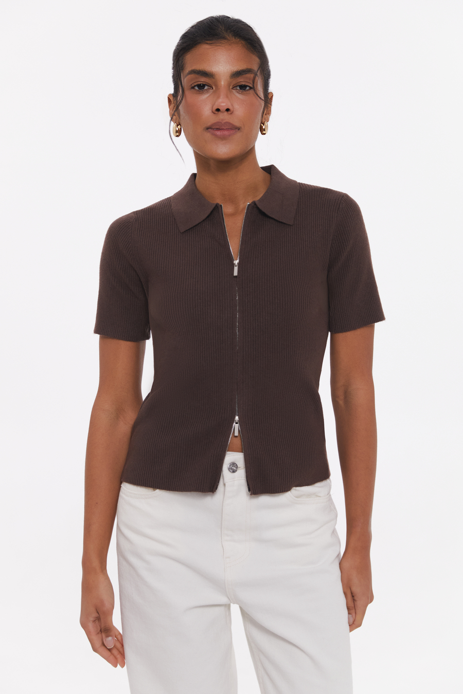Мягкий джемпер-поло с коротким рукавом легко вписывается в любой гардероб. Функциональная застёжка-молния позволяет регулировать глубину выреза и носить модель как самостоятельный верх или вторым слоем поверх майки. Лаконичный крой делает джемпер-поло универсальным: он отлично сочетается с джинсами (арт. 7041 или 7042), шортами и костюмными брюками, помогая создавать образы с разным настроением. Идеальный вариант для офиса, учёбы, путешествий или выходных, когда хочется выглядеть собранно без лишних усилий. Приятный трикотаж на основе хлопка с добавлением шерсти обеспечивает комфорт и уют на протяжении всего дня.