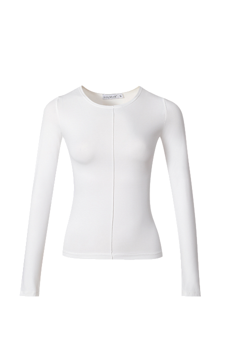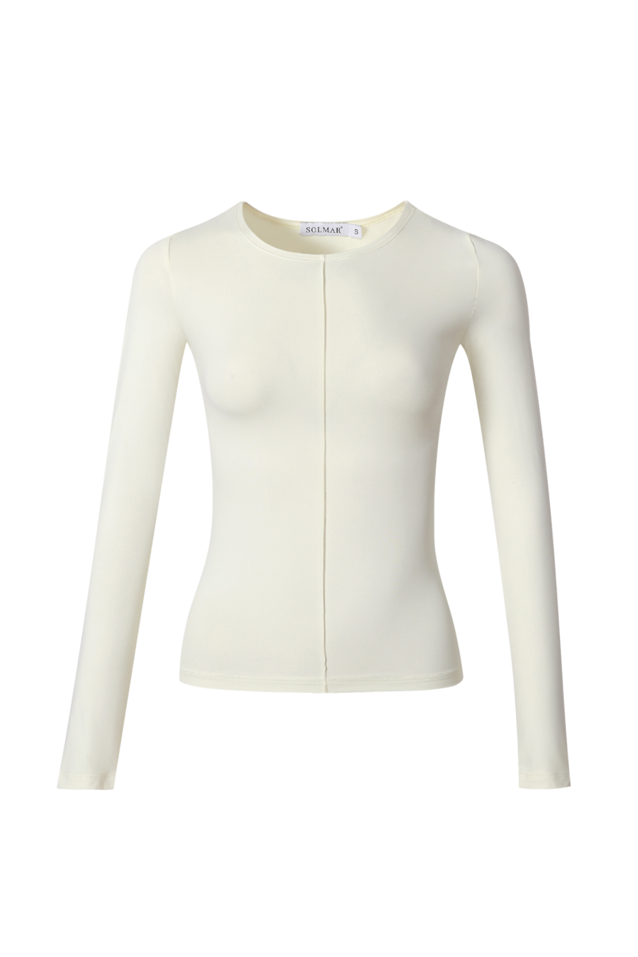 Женский лонгслив из гладкой эластичной ткани second skin, который красиво подчёркивает силуэт и комфортно прилегает к телу. Лаконичный дизайн с центральным швом добавляет сдержанный акцент и визуально вытягивает фигуру. Лонгслив ощущается на теле как вторая кожа, отлично сочетается с джинсами, брюками, юбками (арт. 6421) и костюмами, подходит как для повседневных образов, так и для офиса или встреч после работы. База, которая работает в любых комбинациях — просто добавляешь любимый низ, и образ готов.