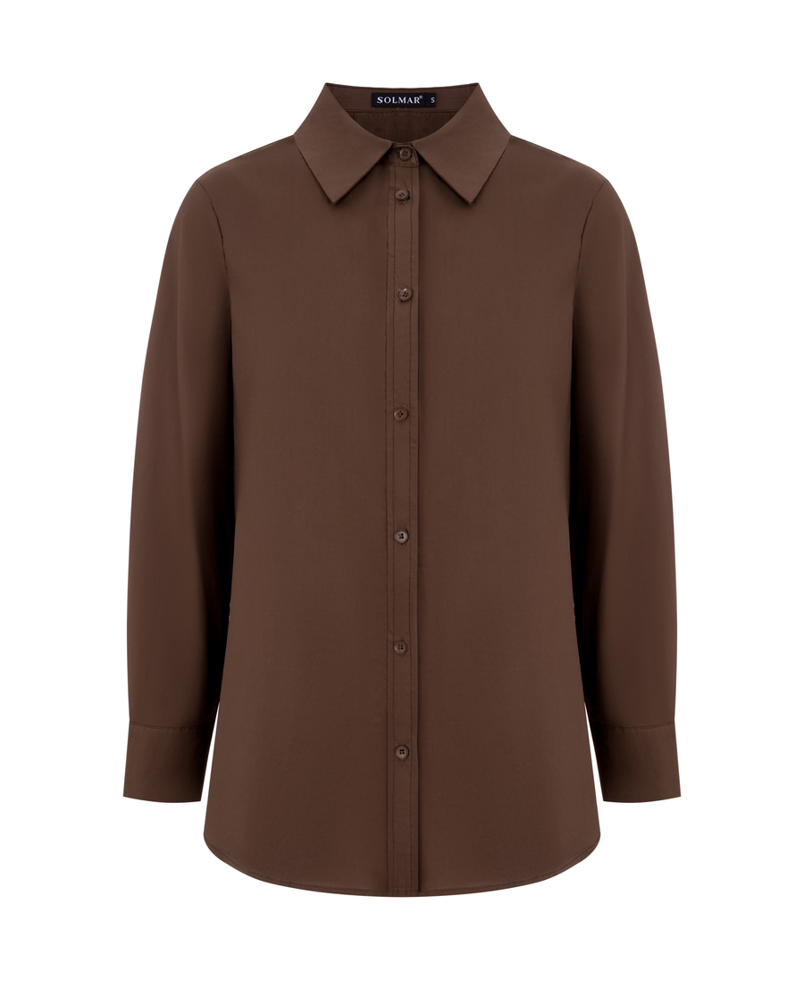 Классическая рубашка прямого кроя из 100% хлопка – твоя база на каждый день. Она хорошо держит форму, легко сочетается с джинсами, костюмными брюками или юбками. Подойдет как для офиса, так и для более расслабленных образов в стиле кэжуал. Благодаря глубокому шоколадному оттенку выглядит стильно, сдержанно и идеально дополняет осенние луга. Добавь акцентные аксессуары и ботинки на каблуке – и образ легко изменится на вечерний.