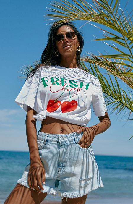 Джинсовые шорты с необработанным нижним краем голубого цвета