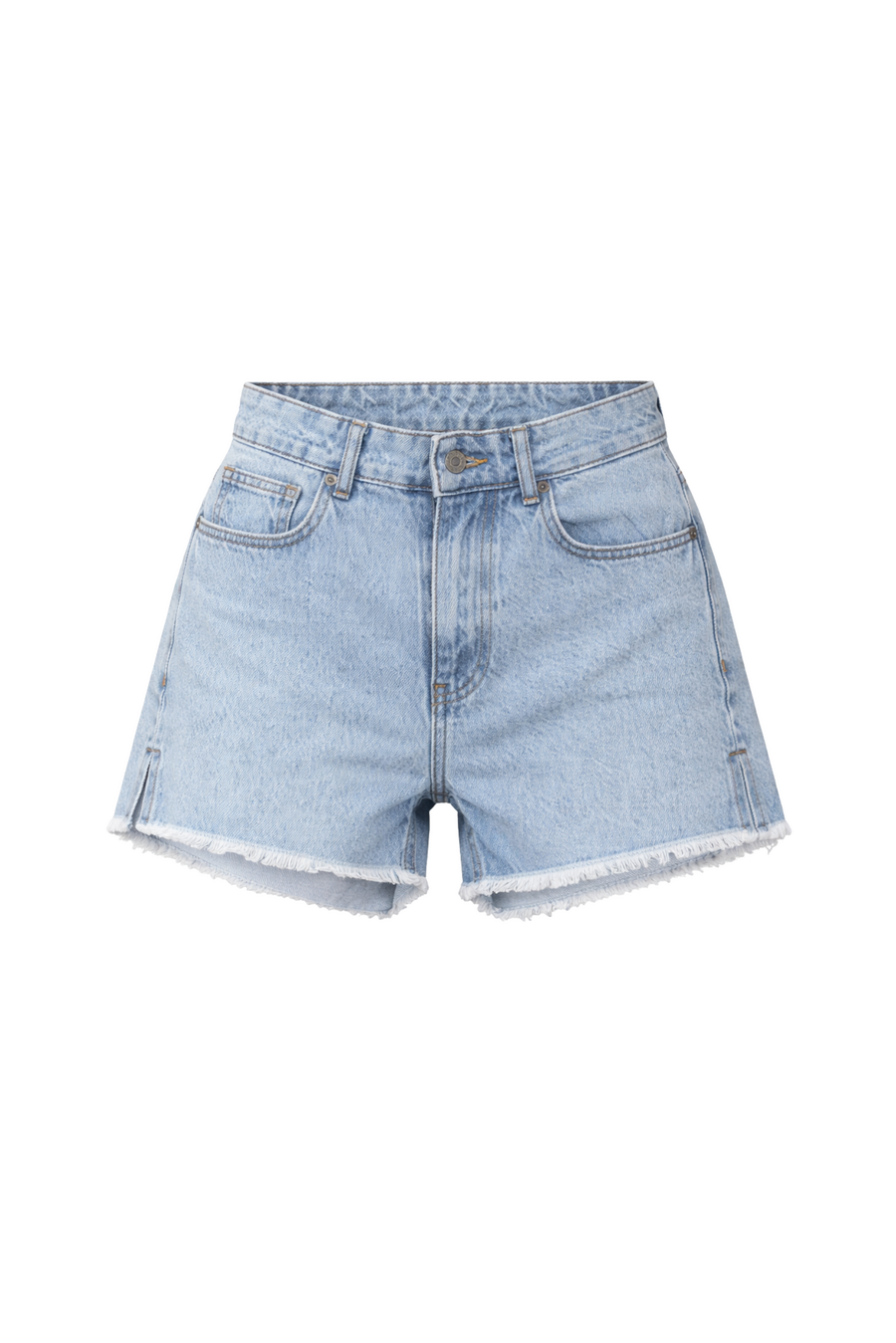Светло-голубые джинсовые шорты – стильная база с легким настроением. Необработанный край и деликатная потертость придают образу непринуждённости и делают силуэт более расслабленным. Комбинируй эти женские джинсовые шорты с укороченным топом, базовой майкой или легкой рубашкой из льна или хлопка. Для повседневного образа выбирай кроссовки или сандалии, а для более утонченного настроения – балетки или босоножки. Универсальная вещь, которая станет основой летнего гардероба.