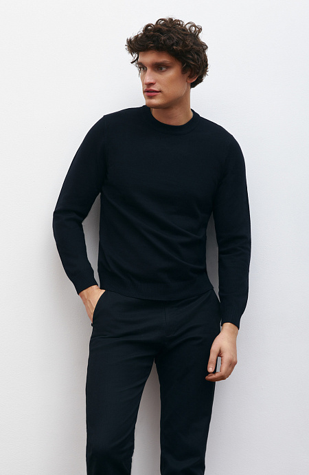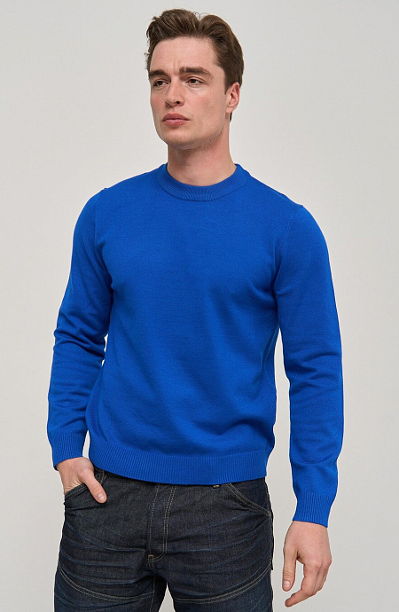 Мужской вязаный джемпер с круглым вырезом горловины. Ткань – качественный трикотаж с натуральным хлопковым основанием, поэтому в нем будет комфортно целый день. За счет такого состава прекрасно подходит для любого сезона, хорошо сохраняет тепло и позволяет коже дышать. Джемпер хорошо тянется, комфортно садится по фигуре и почти не чувствуется на теле. Впишется как в классический гардероб, так и в образы спортивного стиля.