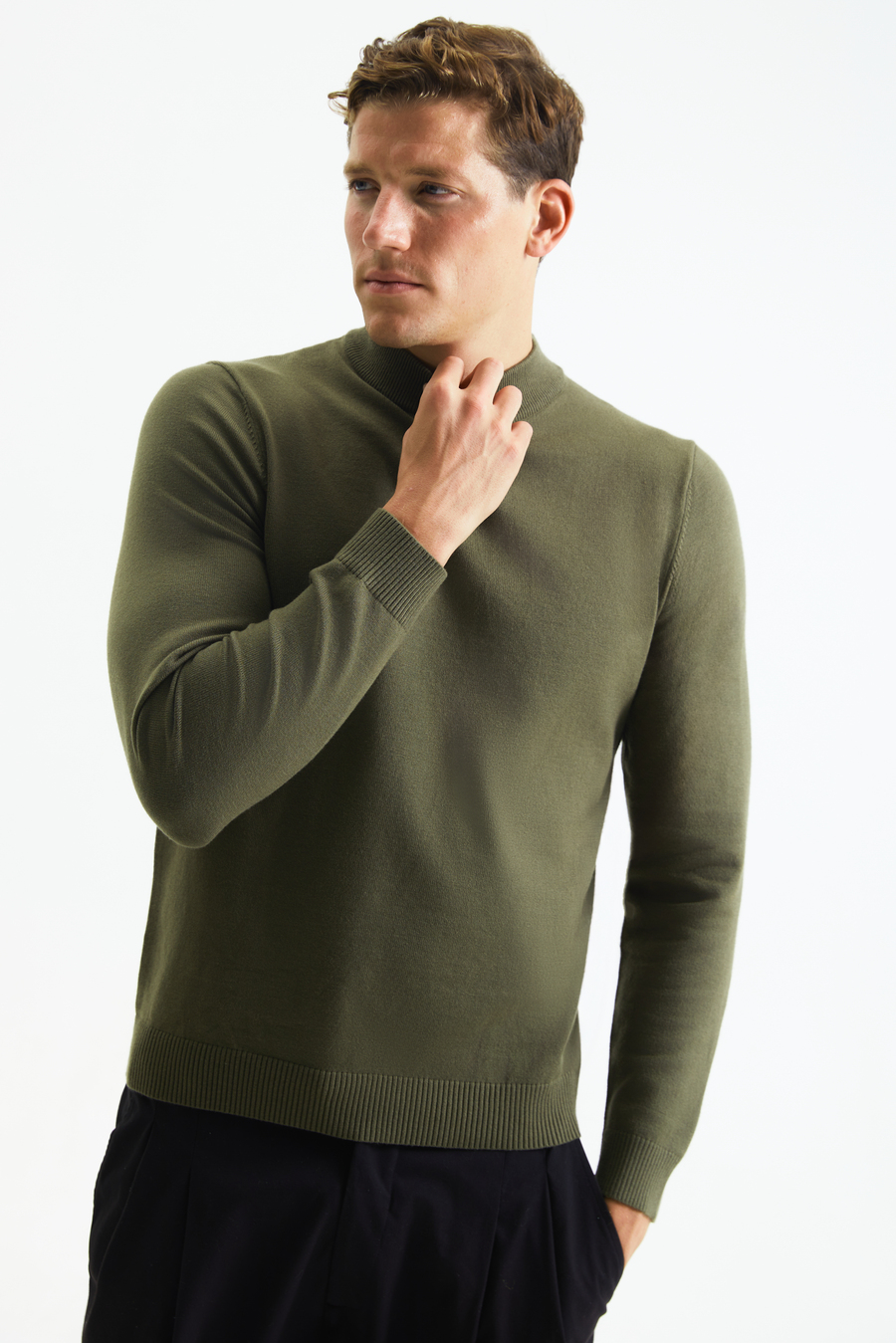 Мужской гольф с воротником-стойкой и манжетами по краю и рукавам. Универсальная вещь, подходящая к одежде в любом стиле: от классических брюк из костюмной ткани до спортивных джогеров. Качественный трикотаж с высоким содержанием хлопка невероятно мягкий и приятный на ощупь, хорошо тянется, комфортно садится по фигуре. Ткань устойчива к износу и стирке, поэтому гольф прослужит много сезонов.