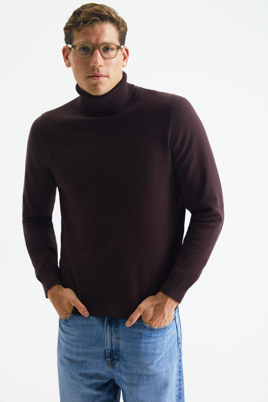 Мужской гольф с высоким воротником из качественного хлопкового трикотажа. Приталенный крой подчеркивает фигуру и обеспечивает комфортную посадку. Ткань очень мягкая и приятная на ощупь, хорошо тянется, при этом устойчива к износу. Гольф хорошо сохраняет тепло и почти не чувствуется на теле при ношении – натуральная хлопчатобумажная основа подходит для всех сезонов и гарантирует бескомпромиссный комфорт.