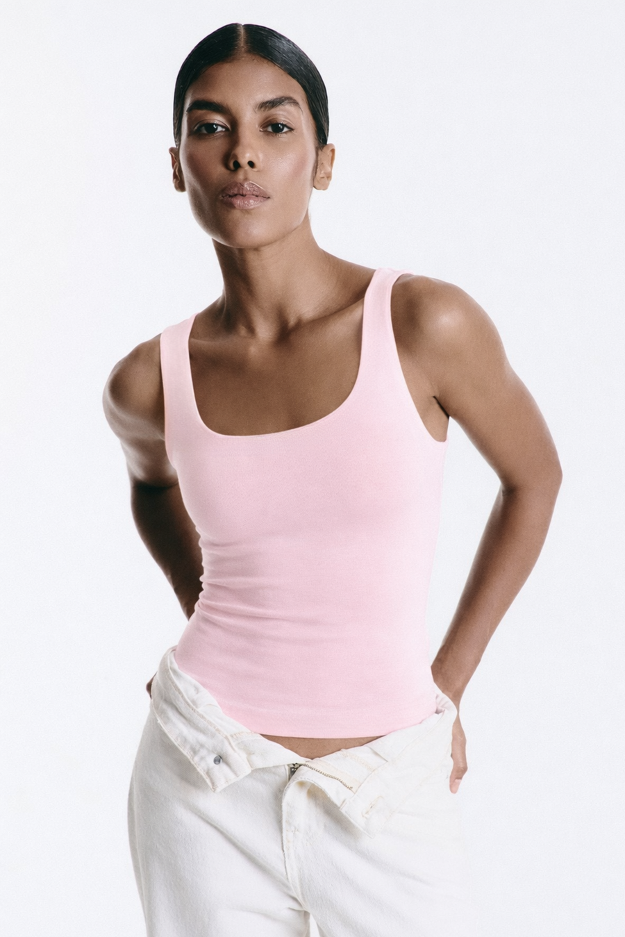 Базовая майка – это must в твоем гардеробе. В теплую погоду ее можно носить как самостоятельный элемент одежды, а в более прохладную – надевать под жакет, джинсовку или кардиган. Квадратный вырез интересно смотрится на теле, а гладкая текстура и приталенный фасон создают эффект второй кожи. Рекомендуем выбрать эту модель сразу в нескольких оттенках, чтобы создавать еще больше стильных лугов для разных поводов.
