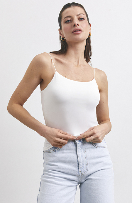 Укороченная майка в рубчик черного цвета. Лаконичный дизайн с модным акцентом делает эту модель очень универсальной. А базовый цвет позволяет комбинировать ее с одеждой и аксессуарами во всех палитрах. Наш фаворит этой весны – серый total denim look с короткими шортами, классической джинсовкой, черным топом и яркими аксессуарами.