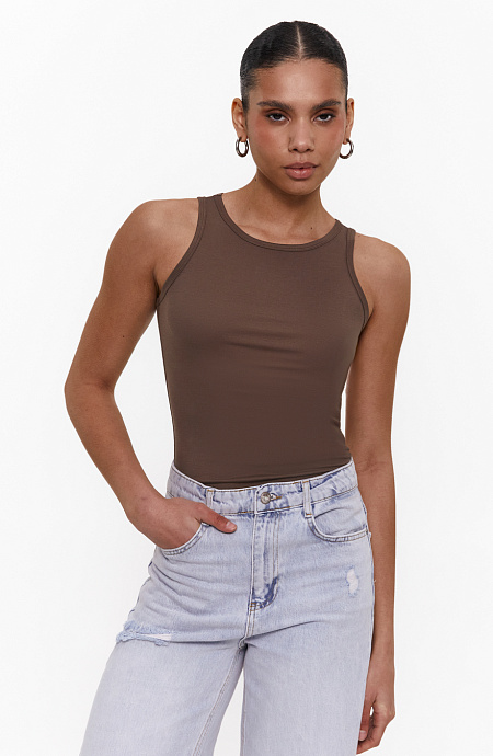 Лаконичная майка приталенного фасона выглядит интересно и оригинально благодаря контрастной окантовке, вызывающей ассоциацию с эстетикой Chanel. Эта акцентная деталь придает особый шарм и элегантность этой модели. Майка может стать гармоничным элементом стильных black&white лугов, но прекрасно миксируется и с голубыми джинсами. Модель имеет высокое содержание хлопка в составе, поэтому подарит комфортные и приятные ощущения во время ношения.