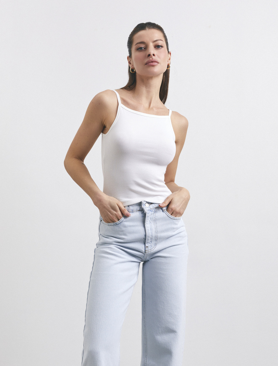 Эта майка - идеальный пример базовой одежды, которая всегда в тренде. Благодаря комфортному составу она приятна к телу и хорошо садится по фигуре. Майка имеет высокий прямоугольный вырез, который выглядит сдержанно и стильно, добавляя образу аккуратности и лаконичности. Он прекрасно подчеркивает ключицы и подходит к одежде в разном стиле. Эта модель настолько универсальна, что ты можешь носить ее как в спортзал, так и на прогулку или даже вечеринку. Сочетай с джинсами для casual-образа, добавь стильный жакет и аксессуары - и ты готова покорять мир!