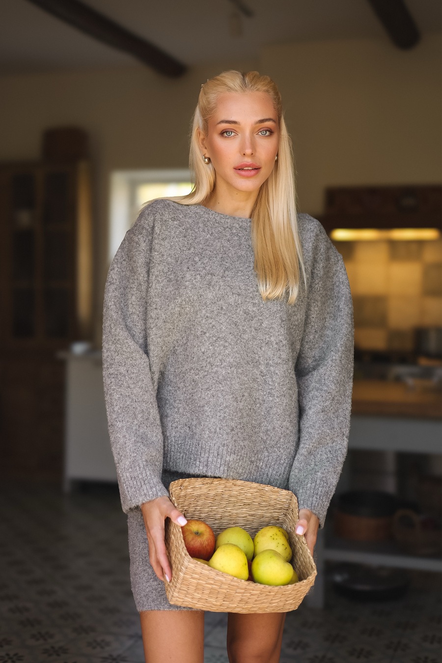 Трикотажный костюм свободного кроя с юбкой, grey