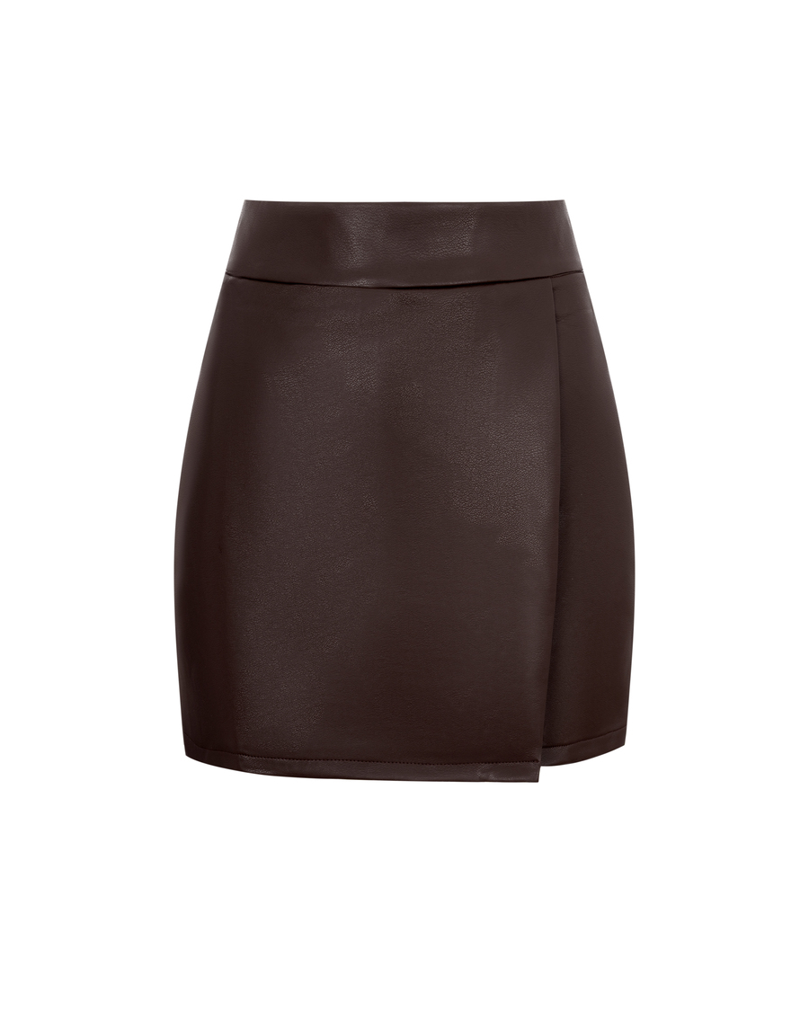 Асимметричная мини-юбка из экокожи с запахом – база, которая создает особое настроение. Она придает смелости, уверенности и дерзости любому аутфиту. Благодаря эффектной фактуре она легко станет акцентом в образе даже в сочетании с простыми вещами. Идеально работает с объемными свитерами, лаконичными рубашками или базовыми лонгсливами. Вариант для любящих минимализм с ноткой вызова. Носи днем с кедами, а вечером с ботильонами или высокими сапогами.