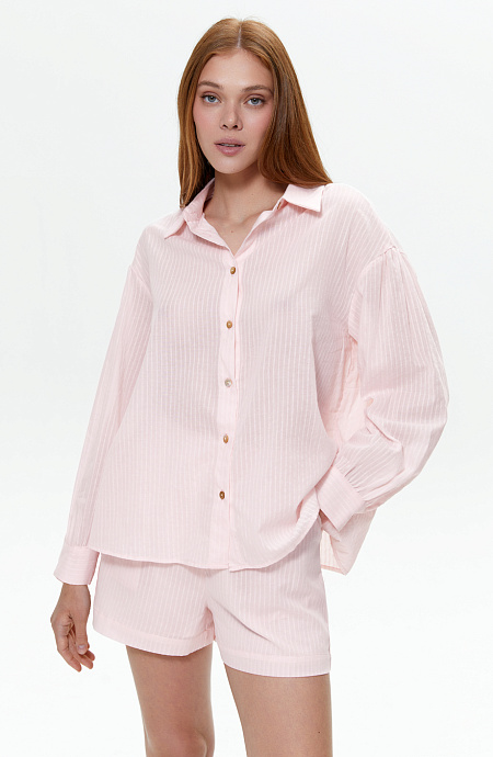 Хлопковый комплект с рубашкой и шортами, Pink