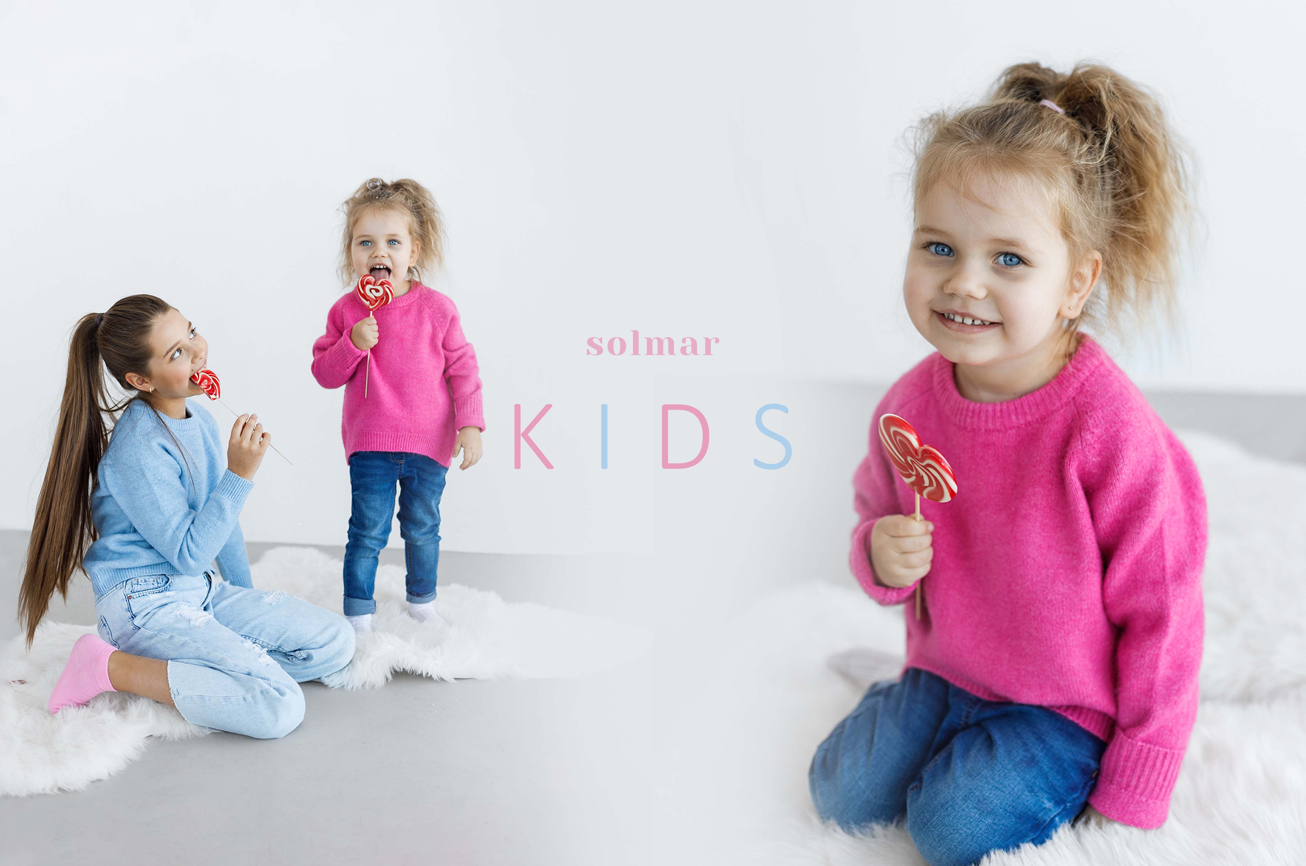 SOLMAR kids – це нова історія від улюбленого бренду. Це втілення мрії кожної дівчинки, яка захоплено дивиться на свою маму зі словами «Хочу, як ти!». Це щирий захват молодшої сестрички, яка вважає шафу старшої сестри скринею скарбів та потай приміряє її речі. Це емоції мамочок, які люблять створювати family look зі своєю донькою і ловити зачаровані погляди оточуючих. Саме тому відповідь на питання, якою має бути перша колекція дитячого базового одягу, для нас була очевидною – до неї увійшли зменшені копії п’яти наших кофтинок-бестселлерів у актуальних для діток кольорах.