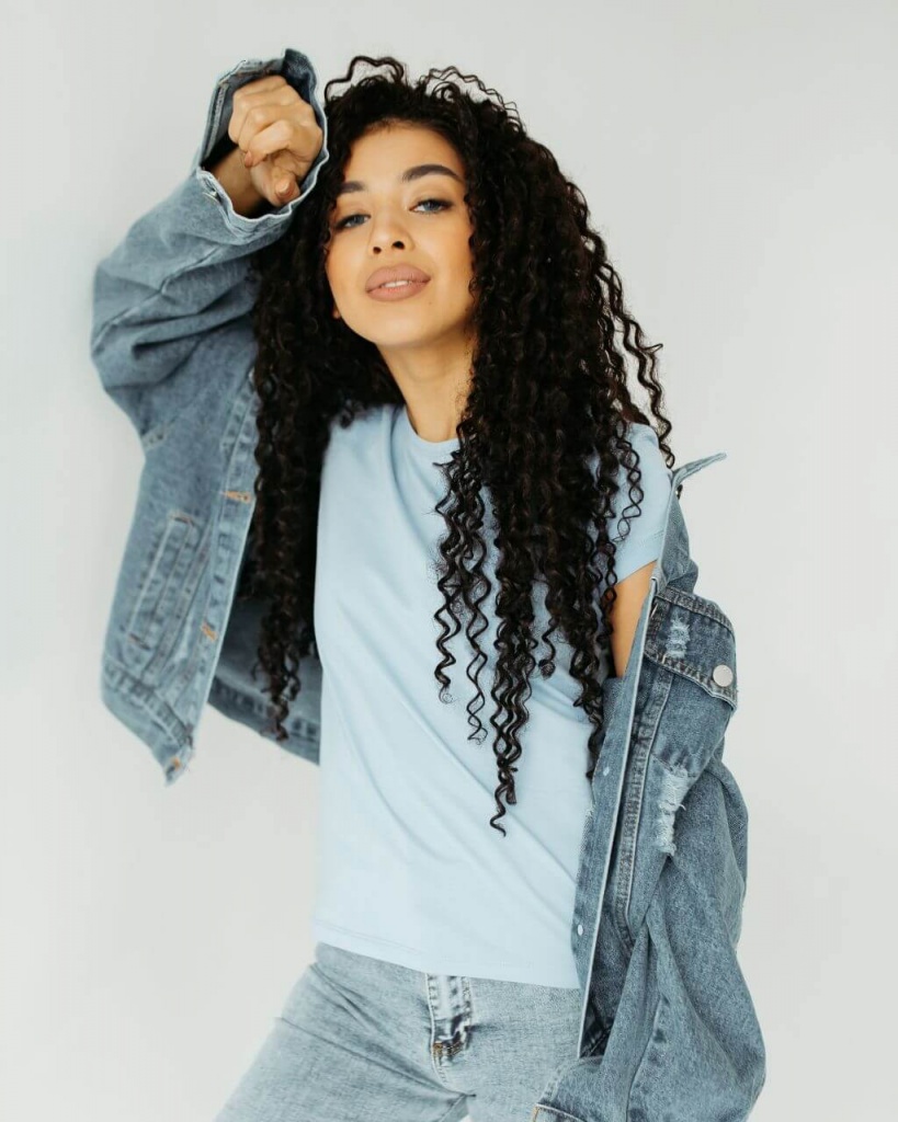 Футболка не має облягати фігуру. Вільний крій допоможе зробити образ легким, а за допомогою кольору можна спробувати відтінити очі чи волосся. Вибирайте жовтий, червоний чи яскравий зелений. Більш м'які кольори підійдуть для більш звичайних випадків.