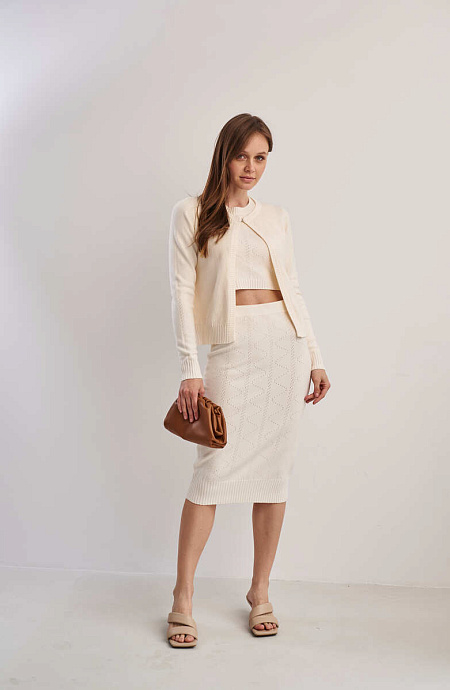 Костюм трійка (топ, спідниця, кардиган) кремового кольору