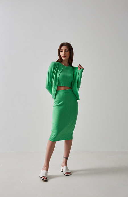 Костюм трійка (топ, спідниця та кардиган) зеленого кольору