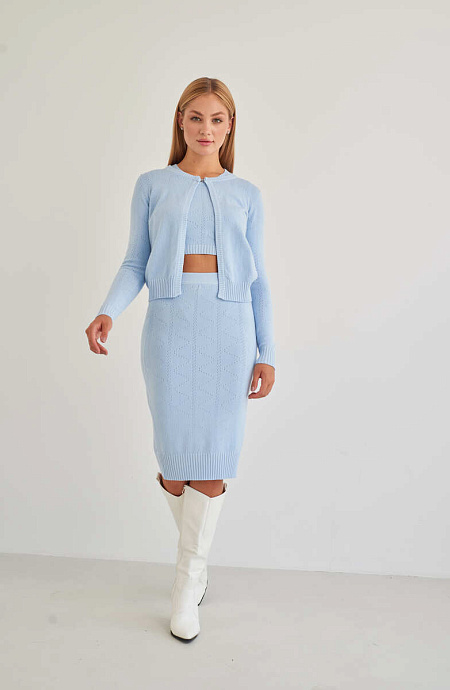 Костюм трійка (топ, спідниця та кардиган) кольору blue