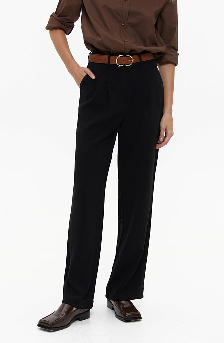 У нас представлені моделі з високою талією та середньої посадки, широкі та в обтяжку, на резинці та з класичною застібкою, з декоративною фурнітурою та без зайвих деталей. Більшість штанів виконані з бавовни чи змішаних тканин, що добре тримають форму та комфортні у носінні.