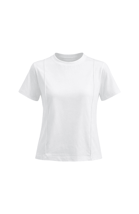 Фігурний виріз надає футболці особливого шарму та елегантності, забезпечуючи плавний перехід з одного вирізу на інший. Цей дизайн підходить для тих, хто хоче додати невелику дозу інтриги до свого образу, але при цьому не бажає, щоб він був занадто складним або вишуканим.