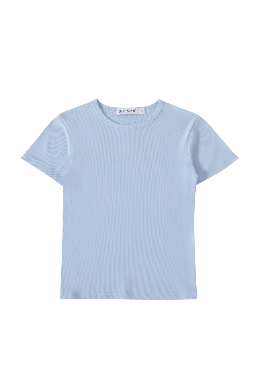 Базова футболка прилеглого крою у блакитному кольорі. Лаконічний дизайн та м’який віскозний трикотаж роблять цю модель дуже універсальною. Комбінуй блакитну футболку з одягом у молочній, пісочній, лавандовій, лимонній або рожевій палітрі. Наш фаворит цього сезону – трендовий образ з білими джинсами мом та жовтими аксесуарами.