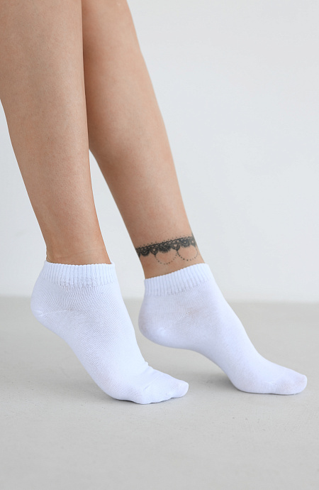 Короткі бавовняні шкарпетки – чудовий вибір на кожний день. Якісний матеріал, що дозволяє ніжці дихати, приємна кольорова гама та оптимальна висота дозволяють носити їх практично з усіма видами демісезонного взуття. Короткі шкарпетки у базовому білому кольорі додадуть легкості будь-якому образу.