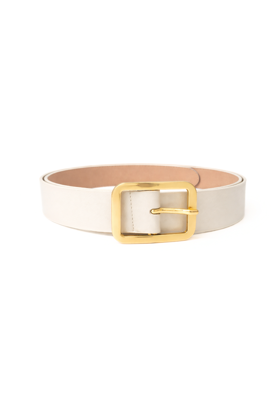 Класичний молочний пояс середньої ширини з прямокутною пряжкою – один з найуніверсальніших аксесуарів базового гардеробу. Його легко поєднувати як з різноманітними джинсами, так і з пальто або тренчем у повсякденних образах. Ремінь виготовлений зі щільної еко-шкіри, тому він гарно тримає форму та достатньо зносостійкий.