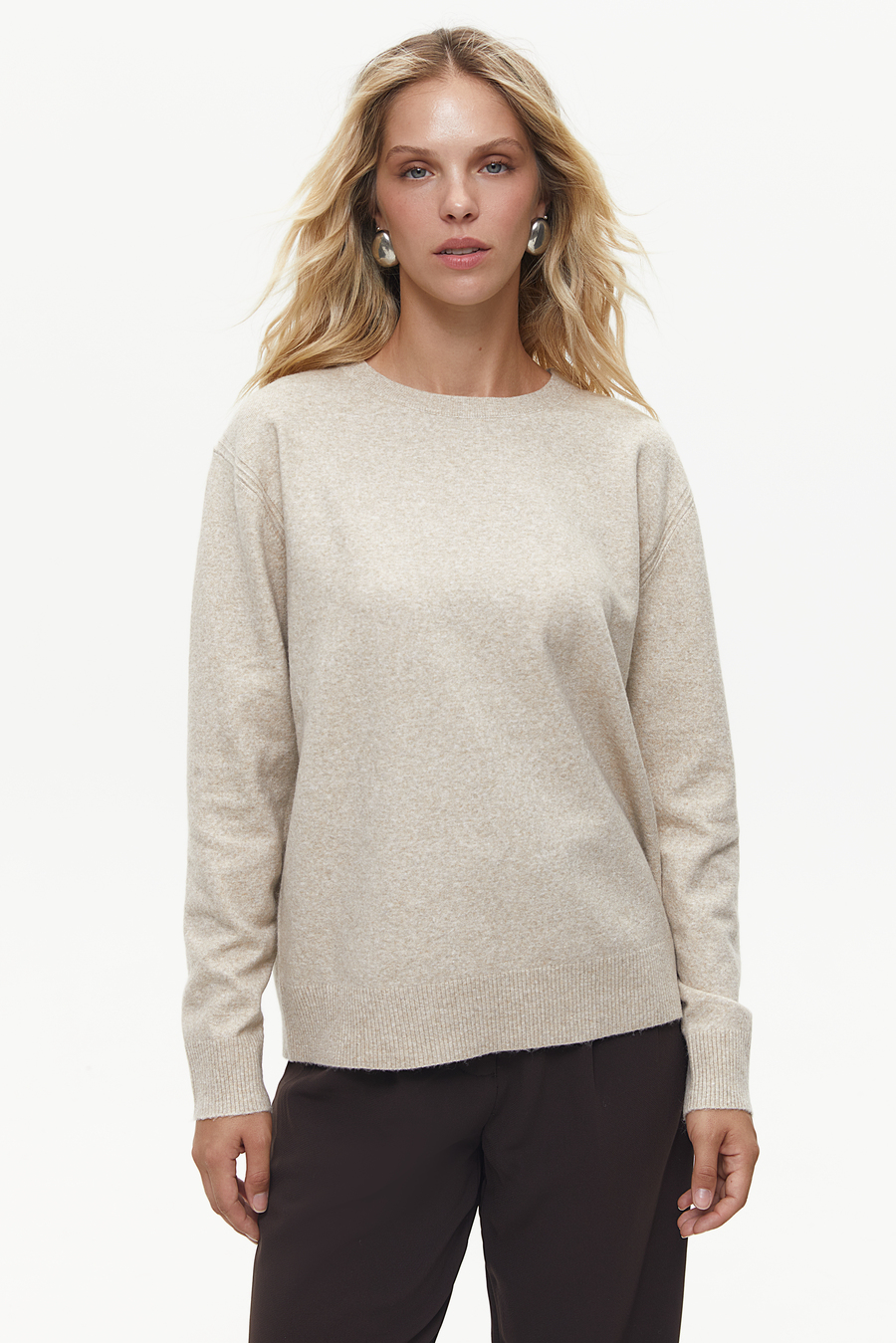Лаконічний светр прямого силуету з круглим вирізом — та сама база, яка виручить у будь-якій ситуації. М’який трикотаж з додаванням мериносової вовни та віскози дарує тепло і приємні тактильні відчуття, при цьому зберігаючи довговічність та зручність. Його легко стилізувати під будь-який настрій: з джинсами — для розслаблених вихідних, з класичними штанами та сорочкою під низ — для роботи. Підійде як для офісу, так і для поїздок чи комфортних прогулянок. Простий варіант, який завжди виглядає доречно.