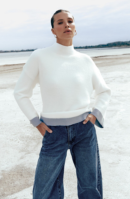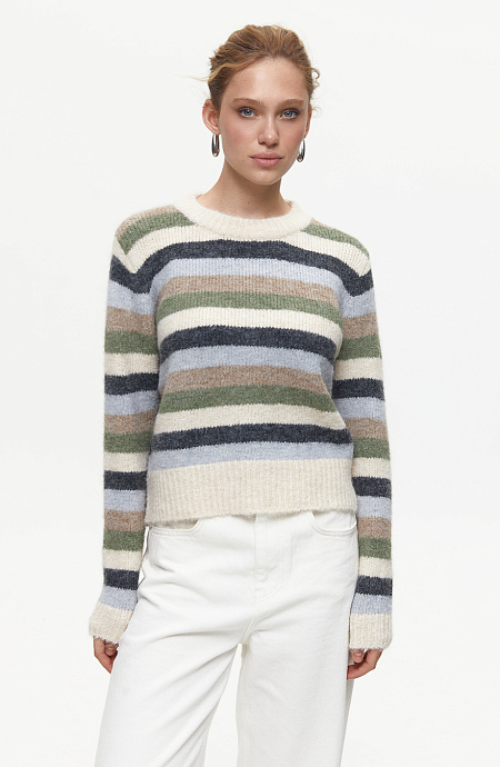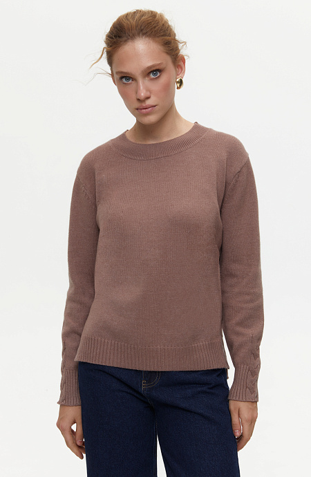 Вкорочений вʼязаний светрик з косами з додаванням вовни. Класична текстурована вʼязка додає будь-якому образу затишку й тепла, а натуральна основа ниток забезпечує безкомпромісний комфорт. Чудово пасуватиме до низу з високою посадкою, наприклад, з джинсами чи спідницею міді з розрізом. За рахунок лаконічної відкритої горловини, гарно поєднуватиметься з сорочками чи поло під низ.