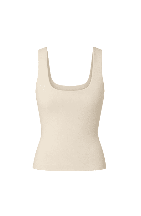 Укорочена майка ніжного блакитного кольору. Лаконічний дизайн з фігурним вирізом на плечі робить цю модель дуже універсальною і водночас трендовою. Топ виконаний з бавовняного трикотажу в рубчик з невеликим вмістом еластичних волокон, тому чудово підходить для літніх образів. Доповни блакитну майку білими джинсами мом, додай взуття лимонного кольору і ти отримаєш чудовий повсякденний look. Більш елегантне поєднання вийде з молочною сатиновою спідницею та аксесуарами бежевого кольору.