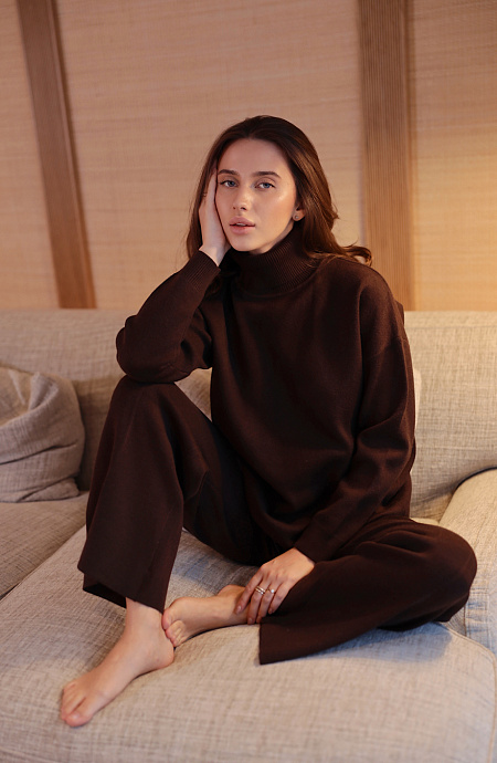 В’язаний брючний костюм нейтрального сірого відтінку – must have базового гардеробу. Светр з круглим вирізом та завужені брюки на резинці утворюють ідеальний тандем і так само гарно виглядають у поєднанні з іншими речами. Стилізуйте кофтинку з брюками, шортами та міні-спідницями з деніму або еко шкіри. Наш улюблений образ з джогерами – мікс класики та спорту з білою футболкою, чорним двобортним піджаком та кросівками.