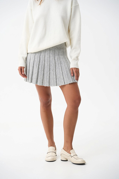 Джинсові шорти-спідниця з необробленим нижнім краєм блакитного кольору
