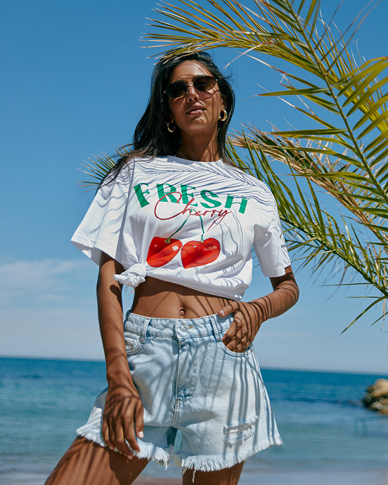 Джинсові шорти з необробленим нижнім краєм блакитного кольору