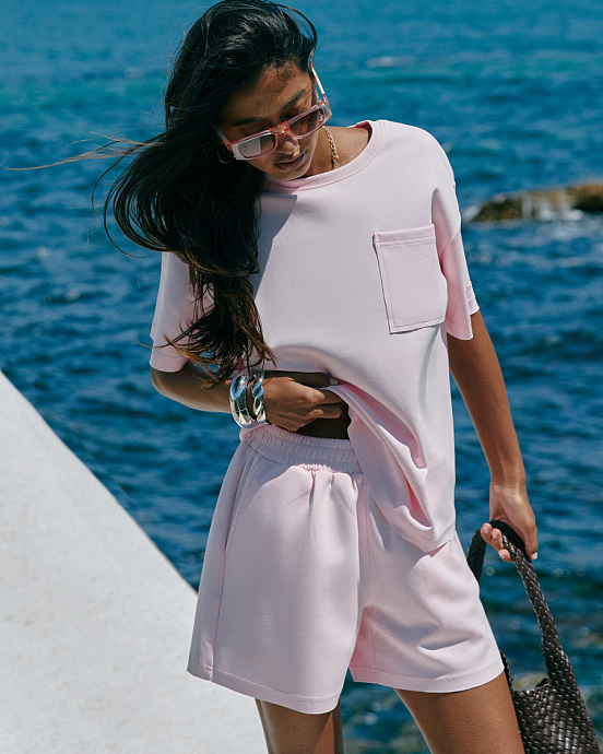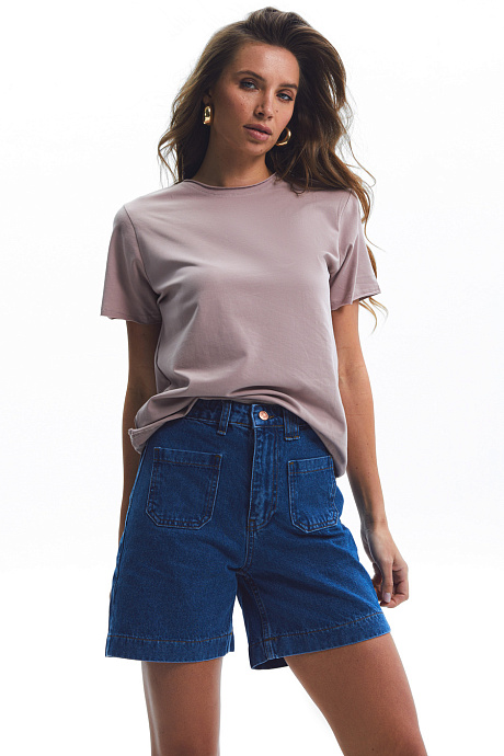Джинсові шорти з фігурною кокеткою та необробленим нижнім краєм блакитного кольору