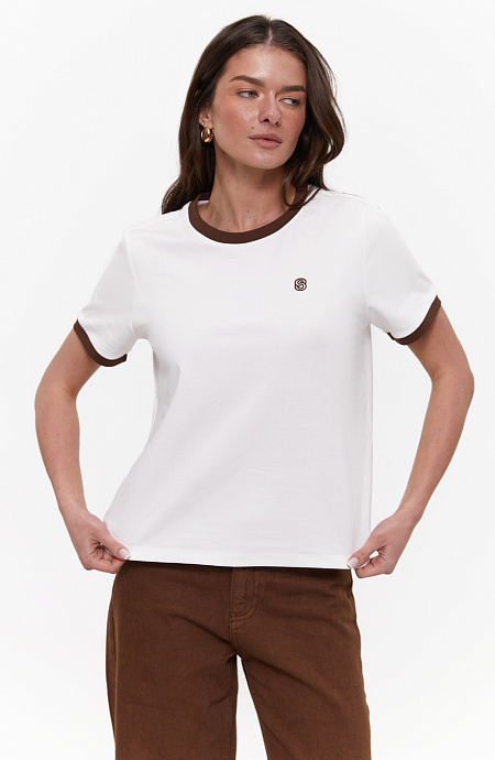 Футболка з контрастним кантом і вишивкою, Brown